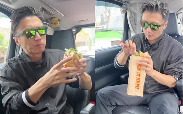 Tạ Đình Phong thích thú trải nghiệm bánh mì Việt Nam.