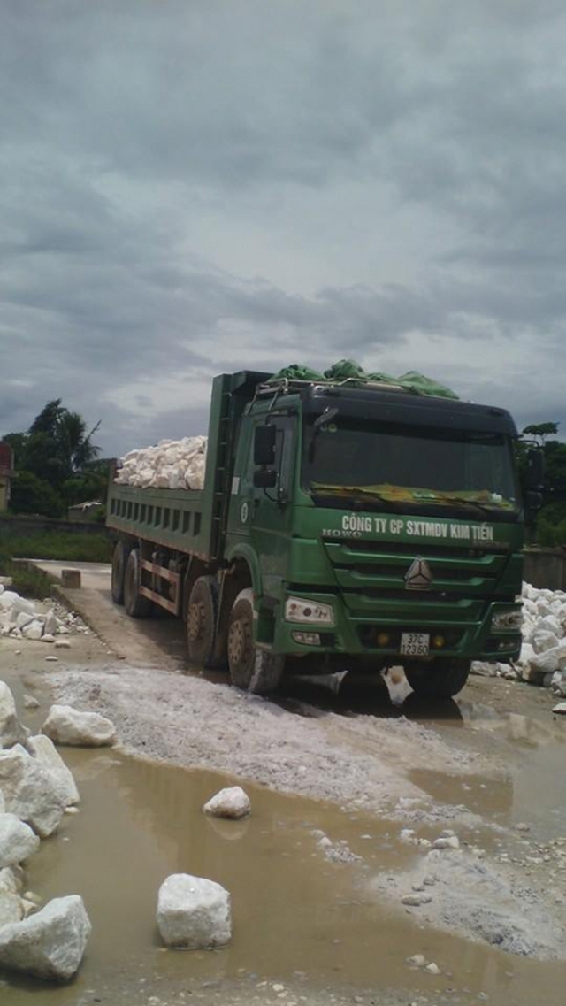 Theo ghi nhận vào khoảng 12h cùng ngày, nhiều lượt xe quá tải nối đuôi nhau vào nhập hàng. Ngoài một số xe quá tải loại ĐôngFeng màu vàng, chiếc xe mang BKS: 37C - 123.60 của Công ty SXTMDV Kim Tiến chất đá cao gần một mét tính từ thùng xe đã được cắt gọt. Sau một lúc được nhân viên cân hàng bằng cân điện tử, các xe này lần lượt đổ hàng xuống bãi tập kết và tiếp tục cuộc hành trình.