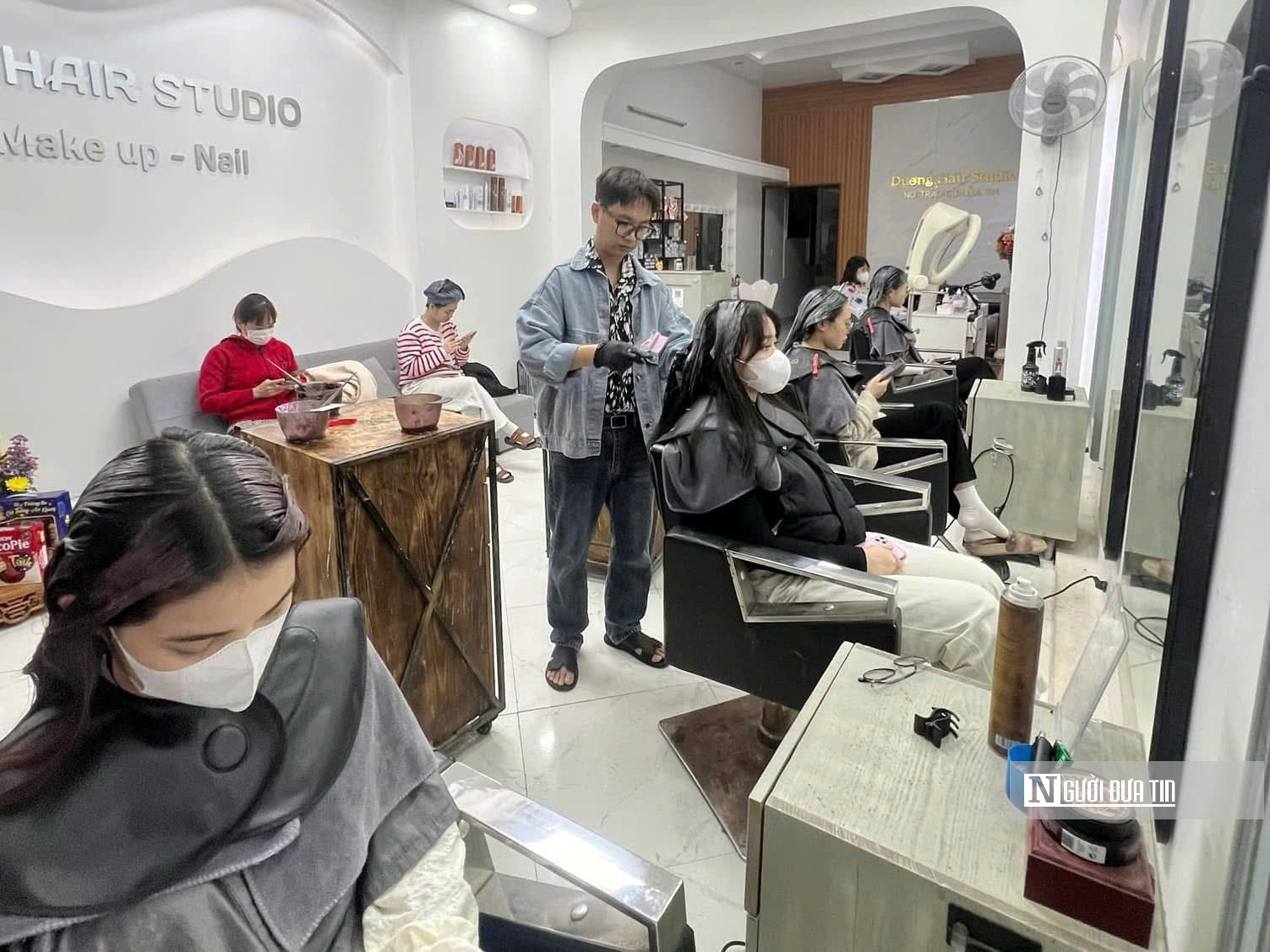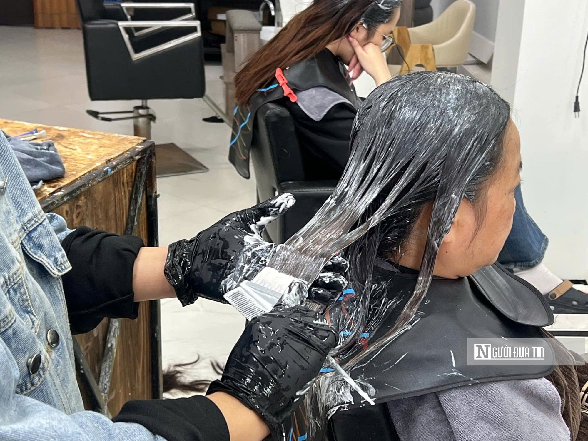 Theo đó, khách làm đẹp dịp Tết thường chọn dịch vụ cắt, uốn, nhuộm, duỗi, tẩy tóc, hấp dầu, phục hồi... Ngoài ra, một số khách chạy theo các trào lưu làm đẹp, chọn cách nối tóc, gắn sợi kim tuyến…
