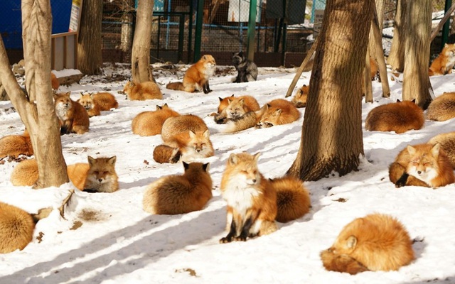 Trong làng có khoảng 100 cá thể cáo, gồm 6 loài, trong đó có cả các loài đặc biệt như: cáo tuyết, cáo bắc cực. Ảnh: Miyagi Journey