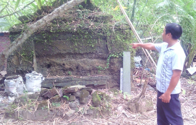 Anh Vũ bên cạnh ngôi mộ cổ gần như còn nguyên vẹn.