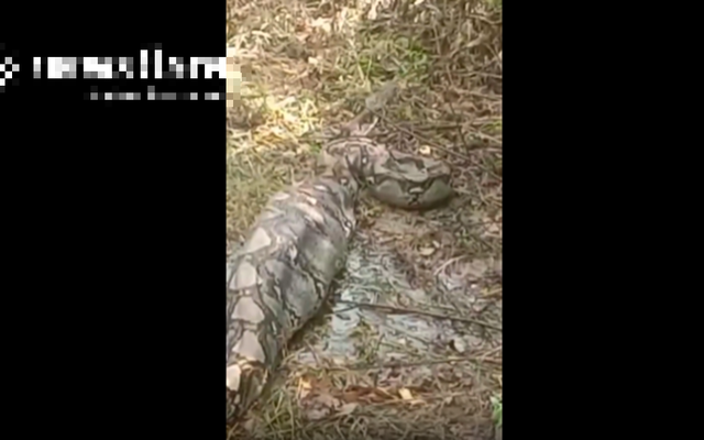 Đoạn clip chia sẻ trên Newsflare cho thấy con rắn khổng lồ với cái bụng phình to đang vật lộn để di chuyển trong một đồn điền cao su ở Nakhon Si Thammarat, Thái Lan.