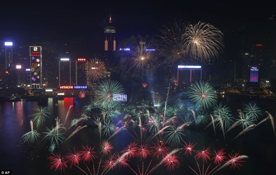 Hàng ngàn người dân tụ tập để xem bắn pháo hoa và ăn mừng năm mới tại Quảng trường Đỏ ở Moscow (Nga).