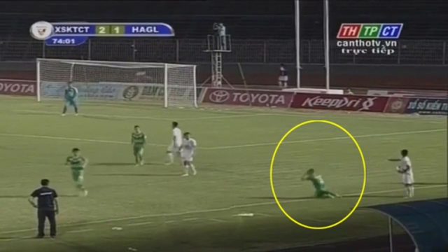 Đặc biệt hơn, cầu thủ này về sau còn giả vờ bị đối phương đánh nguội vào đầu. Anh nằm lăn ra sân một cách rất nhanh và hài hước.