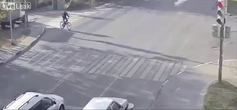Vụ tai nạn xảy ra vào ngày 15/10, ở Ryazan, Nga. Thời điểm trên, một người đàn ông đi xe đạp đang băng qua giao lộ thì bất ngờ bị một chiếc ô tô chạy với tốc độ cao tông trúng.