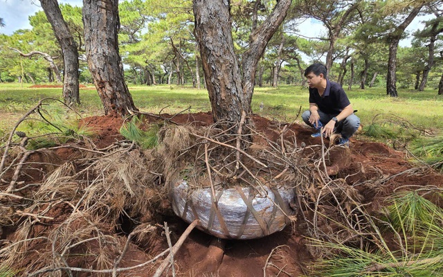 Những dấu vết đào bớt cây thông cổ thụ tại khu vực rừng thông Đắk Đoa. Ảnh: CTV