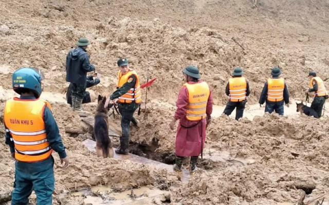 Sáng ngày 16/11, hàng trăm người cùng chó nghiệp vụ tham gia tìm kiếm các nạn nhân mất tích.