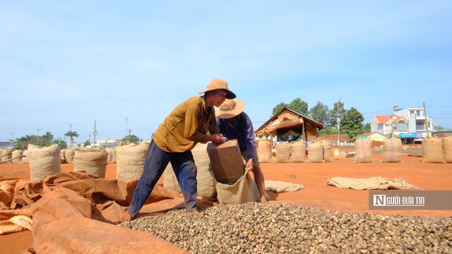 Mỗi bao điều thô phơi khô nặng khoảng 80 - 100kg nên muốn vận chuyển lên vai cần 3-4 người phụ. Vào dịp chính vụ, các đội nhóm nhận phơi điều thuê giá trung bình khoảng 400 ngàn đồng/tấn.