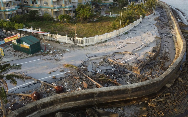 Đầu tháng 12, dọc bãi biển Hải Tiến (thuộc xã Hoằng Tiến và Hoằng Thanh), tỉnh Thanh Hóa, lớp lớp mảnh vỡ từ kè đá, bê tông và hàng loạt cây dừa đổ gãy vẫn nằm ngổn ngang. Nhiều đoạn đường ven biển bị khoét sâu cả mét, mặt đường nứt toác.