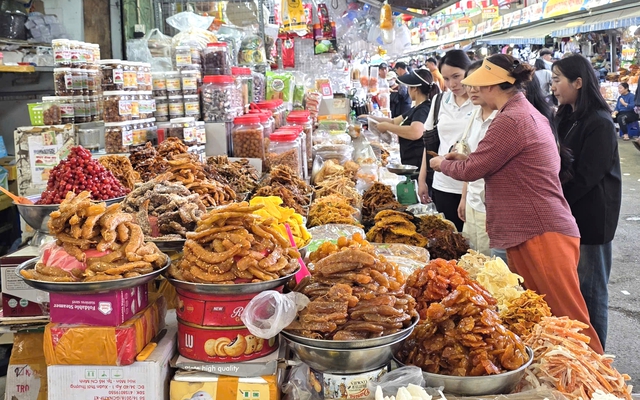 Ông Lê Doãn Thân, Phó Trưởng ban quản lý chợ cho hay, lượng khách tăng lên rõ rệt so với tháng trước, ước tính, mỗi ngày có khoảng 10.000 lượt người ra vào mua sắm, con số này sẽ còn tăng mạnh khi Tết đến gần. "Nguồn hàng khá dồi dào, từ thực phẩm khô, bánh mứt đến thịt cá, rau củ. Chúng tôi thường xuyên nhắc nhở tiểu thương niêm yết giá, bán đúng giá và đảm bảo nguồn gốc xuất xứ", ông Thân nói.
