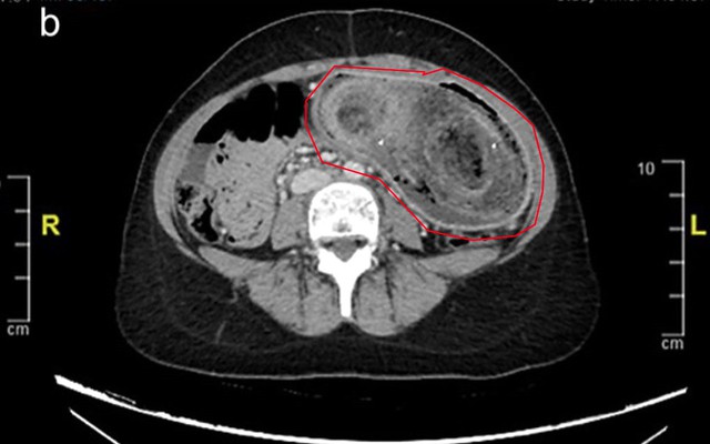 Trong khi tất cả các xét nghiệm trong phòng thí nghiệm đều bình thường, kết quả chụp CT xác nhận rằng búi tóc khổng lồ đã kéo dài từ dạ dày đến tá tràng.