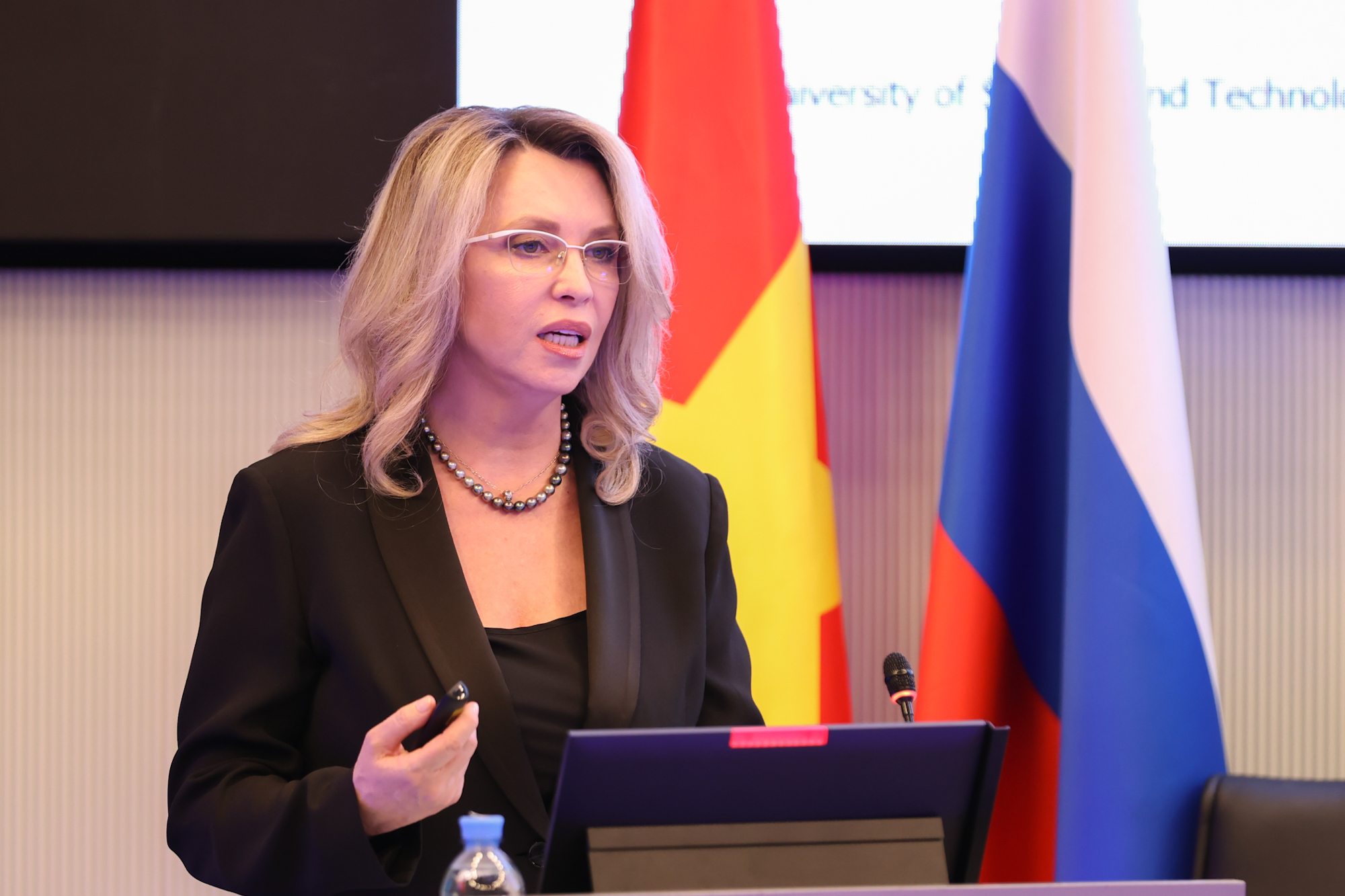 Bà Chernykova Alevtina Anatolieva, Hiệu trưởng MISIS phát biểu (Ảnh: VGP).