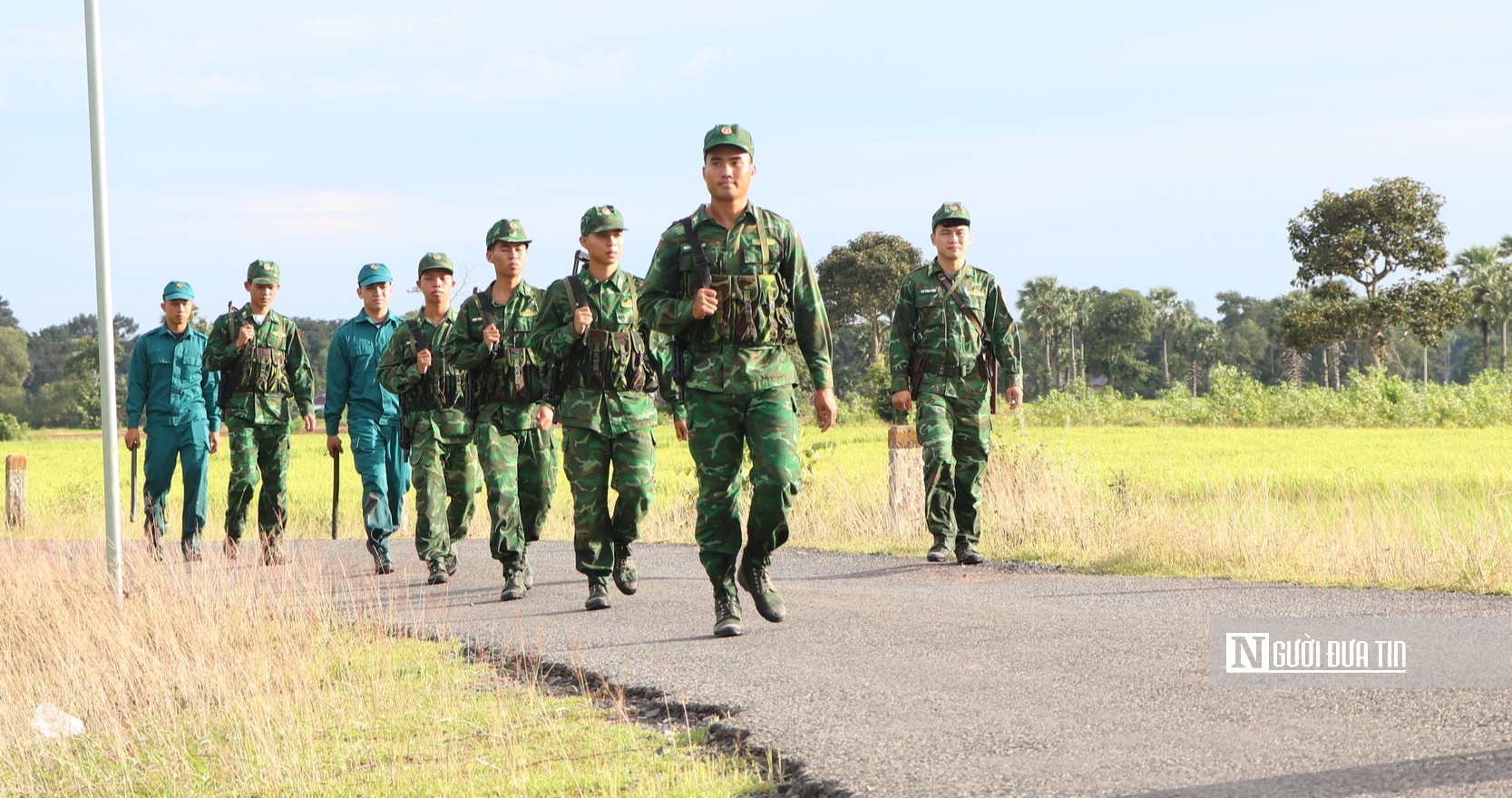 Cán bộ, chiến sĩ Đồn Biên phòng Vàm Trảng Trâu tuần tra trên tuyến biên giới