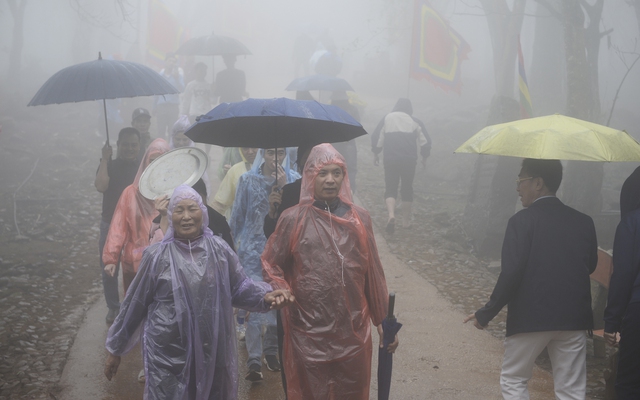 Du khách có trải nghiệm hành hương đáng nhớ trong thời tiết mưa lạnh.