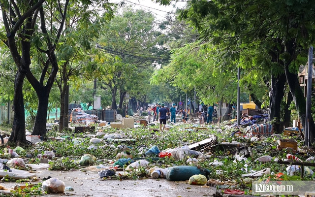 Rác thải bủa vây nhiều tuyến phố sau khi lũ rút ở Huế.