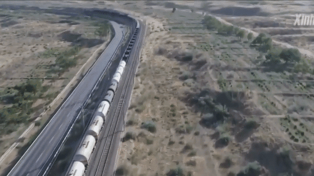 Nhìn từ trên cao, tuyến đường xuyên sa mạc này là minh chứng cho nỗ lực vượt qua điều kiện tự nhiên khắc nghiệt của con người. Các đụn cát di chuyển được chế ngự bằng những cánh đồng rơm do con người tạo nên.