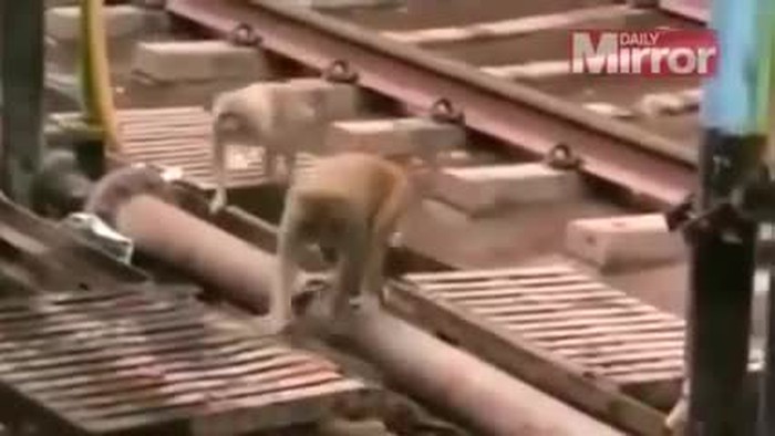 Sự việc xảy ra khi những con khỉ leo trèo để tránh xe lửa. Một trong số đó đã leo lên dây điện cao thế và bị điện giật rơi xuống đường ray. Những tưởng cuộc đời của con khi gặp nạn như thế là kết thúc, nhưng một con khỉ khác đã kéo lê đồng loại rồi thực hiện các động tác “hồi sức cấp cứu”.