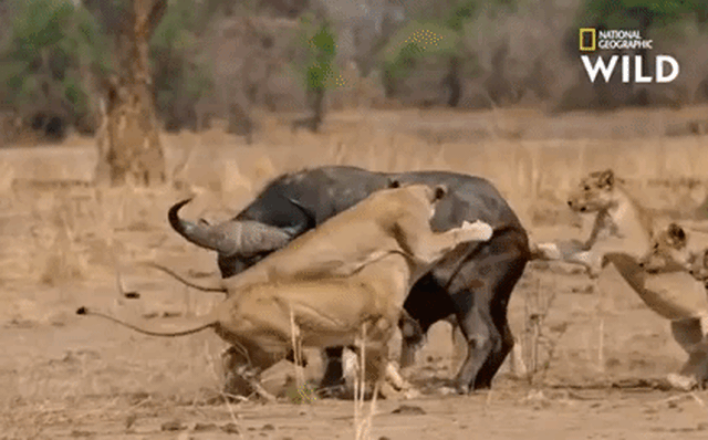 Con trâu rừng khi bị dồn vào đường cùng trở nên hiếu chiến, tấn công ngược lại những con sư tử khát máu. Những con sư tử cố gắng cắn xe con mồi đơn độc nhưng không sao quật ngã được mục tiêu, thậm chí còn bị con trâu húc văng khỏi mặt đất.