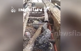 Đoạn clip ghi lại khoảnh khắc kịch tính khi những người bắt rắn tóm được con rắn hổ mang chúa dài gần 3 mét trong nhà vệ sinh của một nhà dân.