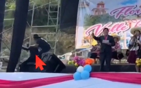 Khi người phụ nữ cúi xuống hôn tay chú rể, cô dâu phản ứng ngay lập tức và dứt khoát bằng cách nắm chặt lấy tay người phụ nữ, giật tóc và kéo cô ta ra xa.