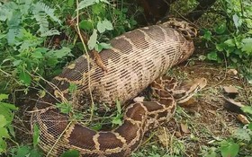 Ra vườn hái rau, người phụ nữ phát hiện cảnh tượng "nổi da gà", khi tiến lại gần thấy con trăn khủng lồ liền hét thất thanh gọi dân làng ứng cứu.