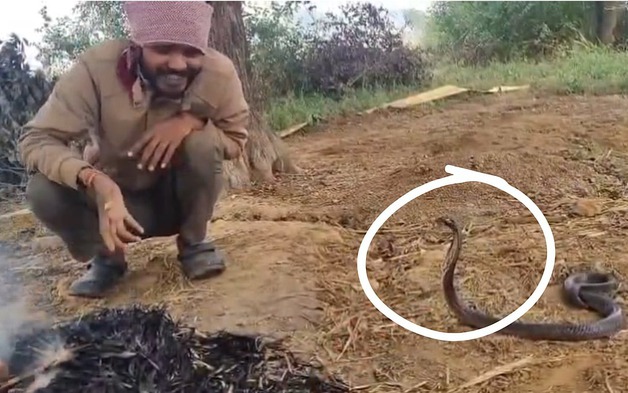 Người đàn ông thản nhiên ngồi "nói chuyện" với rắn hổ mang