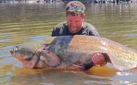 Ngư dân câu được con cá trê khổng lồ dài 2,5 mét trên sông