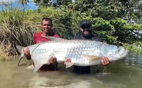 Trong lúc câu trên sông, hai người đàn ông đã bắt được con cá trê piraíba dài 2 mét, nặng 100kg. Tuy nhiên, con cá này không được phép ăn.