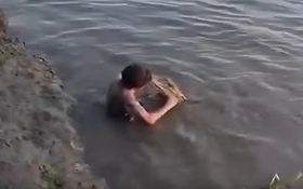 Người đàn ông bắt được con cá khổng lồ nặng 65kg trong hồ