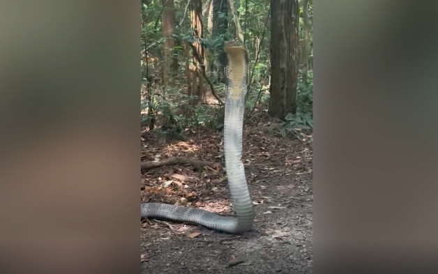 Nữ sinh viên chạm trán rắn hổ mang chúa dài 4 mét trong rừng