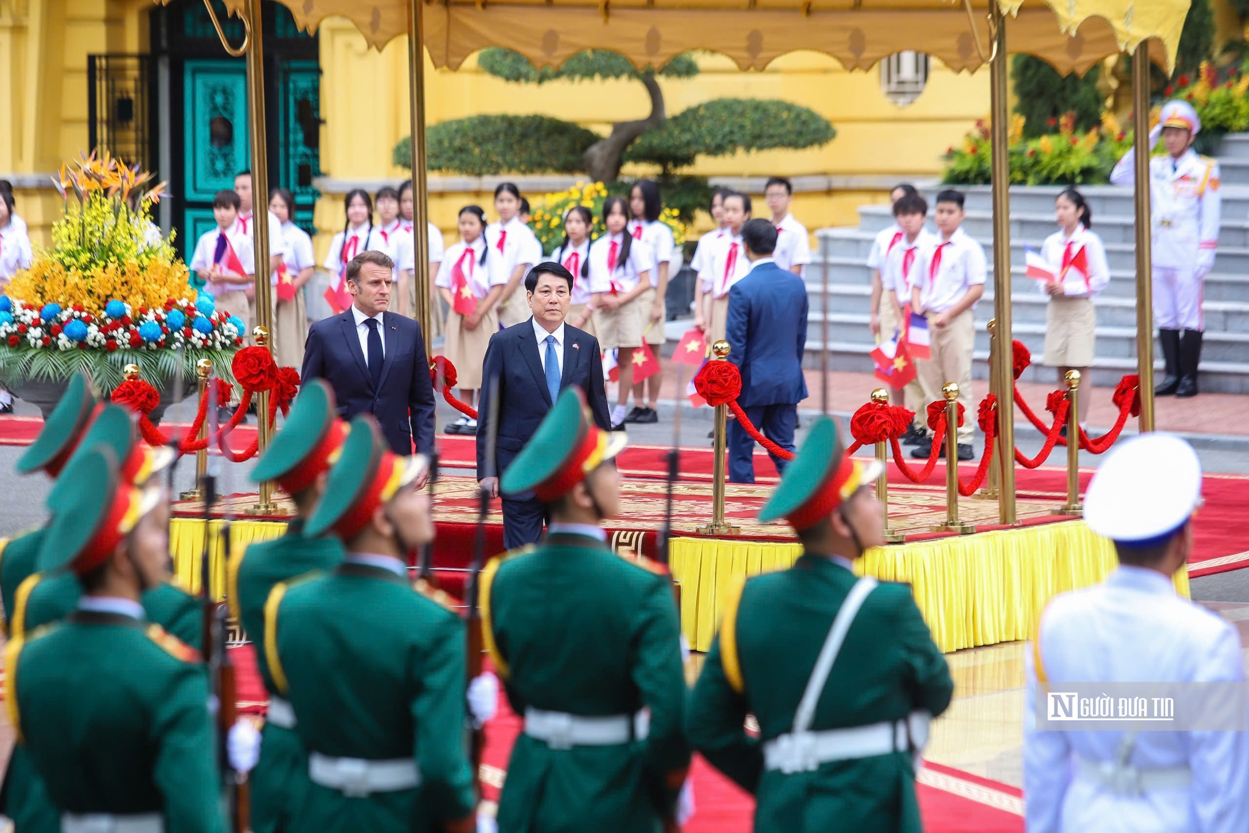 Chủ tịch nước Lương Cường và Phu nhân chủ trì Lễ đón Tổng thống Pháp Emmanuel Macron và Phu nhân thăm cấp Nhà nước tới Việt Nam, tháng 5/2025.