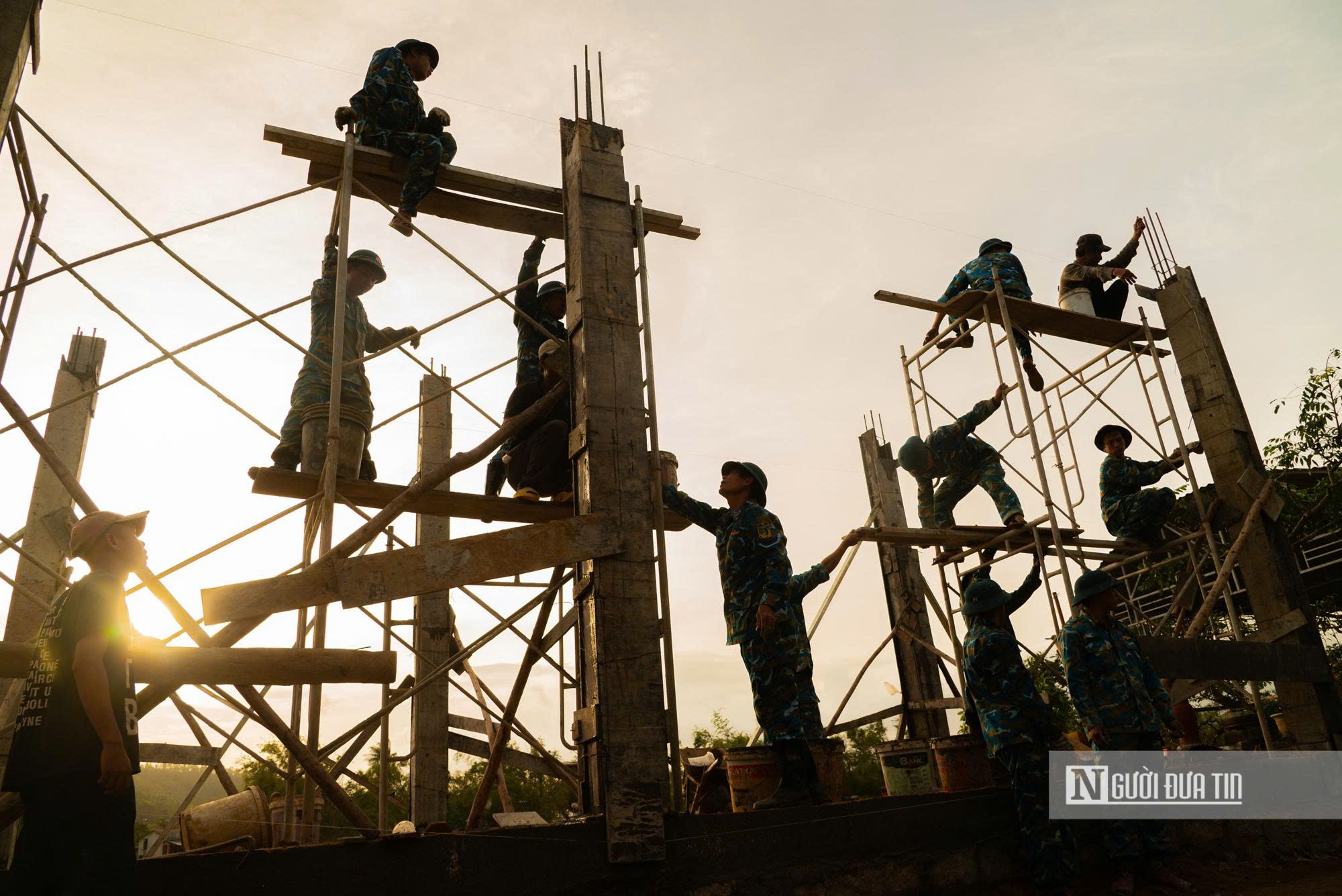 Cán bộ, chiến sĩ Trung đoàn 910, Trường Sĩ quan Không quân xây nhà cho người dân vùng lũ tại thôn Quảng Đức, xã Tuy An Đông, tỉnh Đắk Lắk.