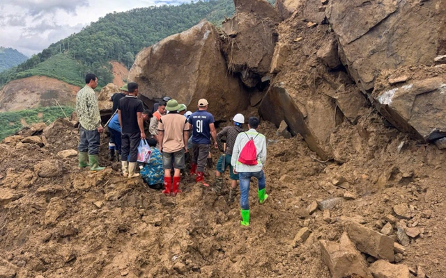 Xe bị chôn vùi hoàn toàn, lực lượng cứu hộ đang khẩn trương triển khai biện pháp đưa phương tiện ra ngoài. Tuy nhiên, công tác cứu hộ gặp khó khăn do khối lượng đất đá lớn và địa hình nguy hiểm.