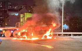 Bất ngờ ô tô tải van bốc cháy dữ dội ở Tp.HCM, trơ khung sau 10 phút