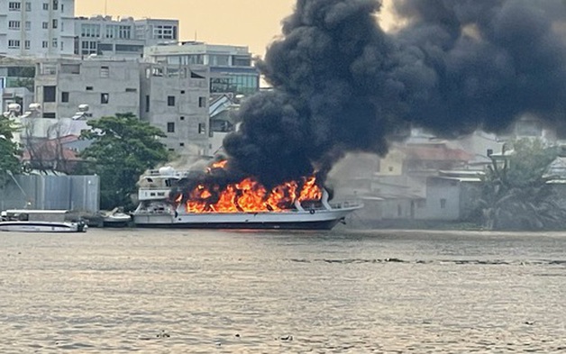 Cháy du thuyền trên sông Sài Gòn, lửa đỏ rực kèm khói đen bốc cao ngùn ngụt