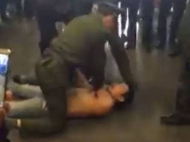 Người đàn ông nghi bị ngáo đá đại náo sân bay Nội Bài bị lực lượng an ninh sân bay không chế - (Ảnh: Cắt từ clip).