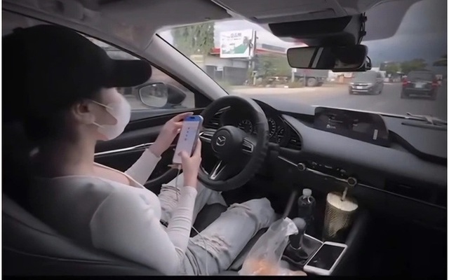 Điều đáng nói, cô gái này đã buông hai tay khỏi vô-lăng và ung dung lướt điện thoại.